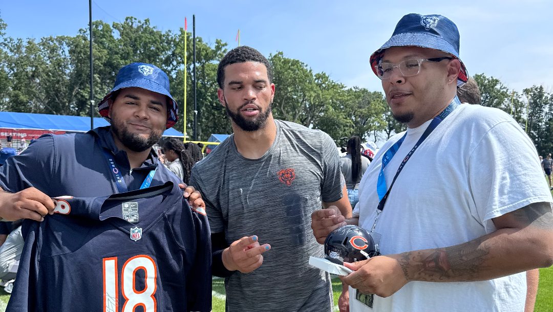 Get the details on the BetMGM experience of visiting the Chicago Bears training camp, including special seating and being able to meet the players.