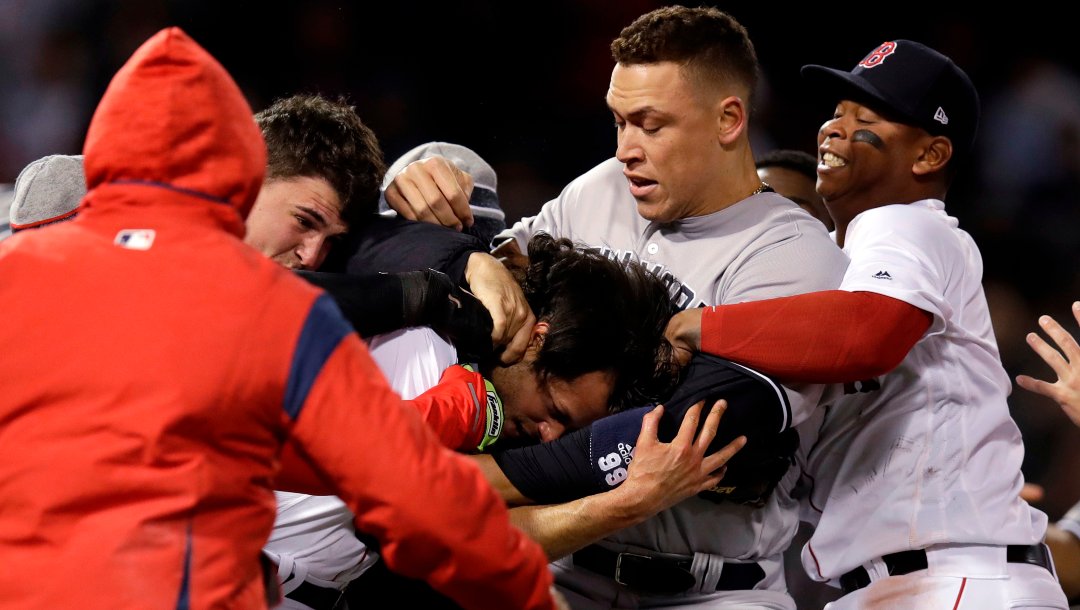 Benches clear, punches thrown in Yankees-Red Sox after Tyler Austin is hit by a pitch from Joe Kelly. pic.twitter.com/wvqoak8QMV