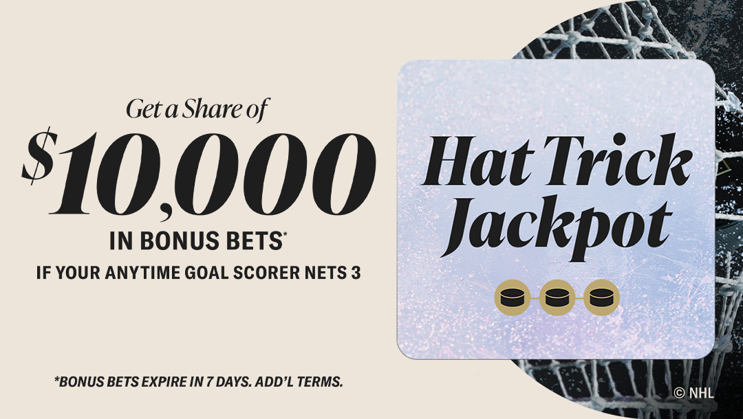 - Example: If Auston Matthews scores a Hat Trick on 4/1/2026 and there are ten (10) Participants with winning Qualifying Bets, each winning Participant will split that day’s $10,000 Hat Trick Jackpot and receive a $1,000 Bonus Bet.